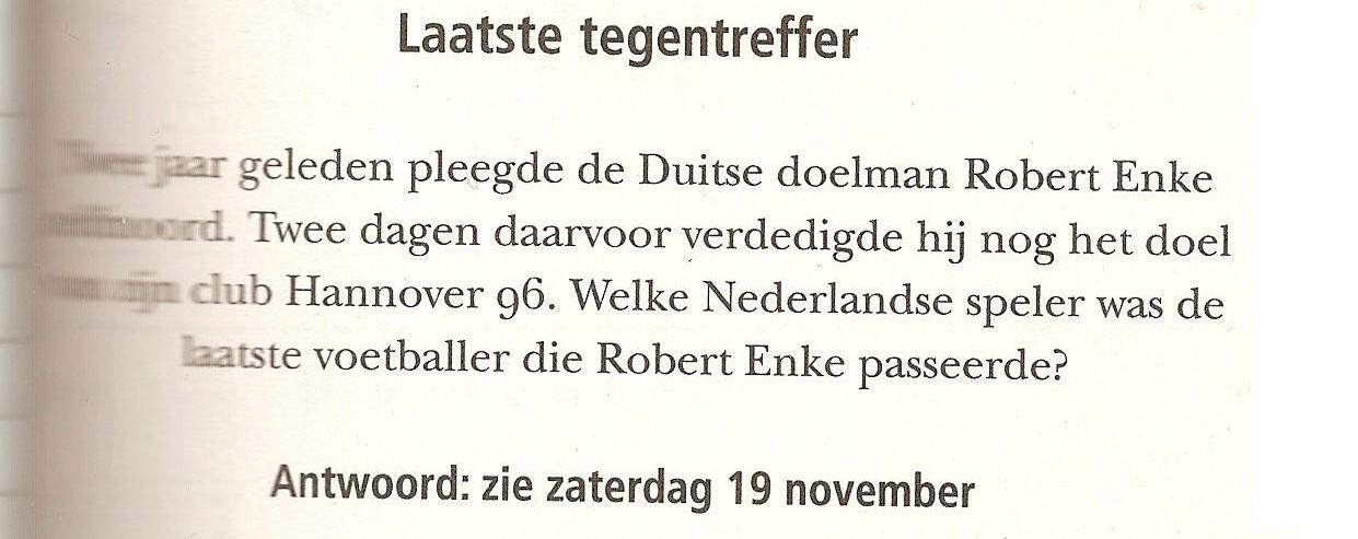 Der „Hard Gras“-Fußballkalender erinnert an Enkes Freitod und stellt die Frage: „Welcher niederländische Spieler war der letzte Fußballer, der Enke bezwingen konnte?“